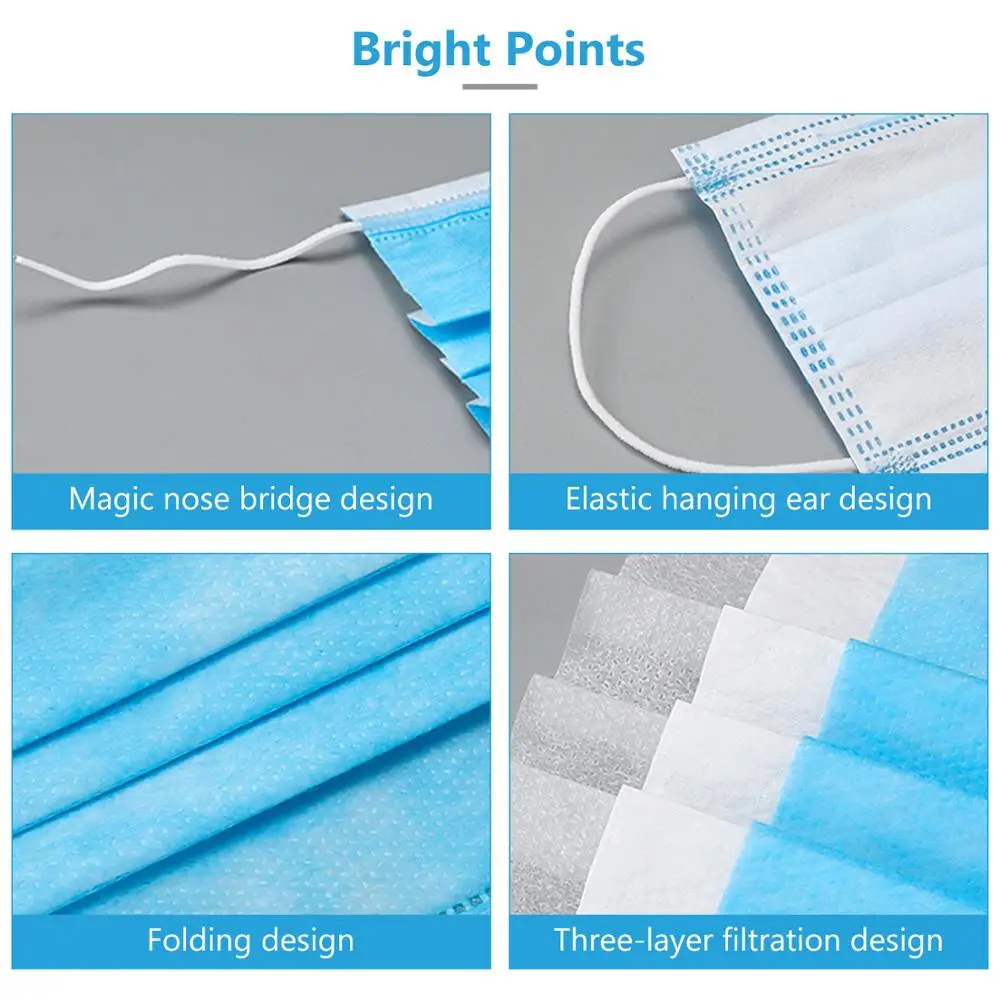 Best Disposable Face Masks 3 Layers Antivirus Mask Dust Protection Masks Elastic Ear Loop Disposable Dus