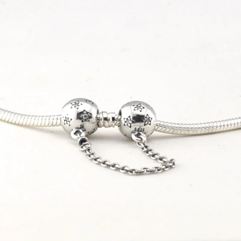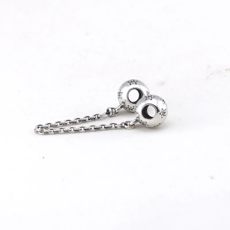 Fits Silver Charms Bracelet New 925 Sterling Silver Star Ball Safety Chain Charm DIY Making Jewelry