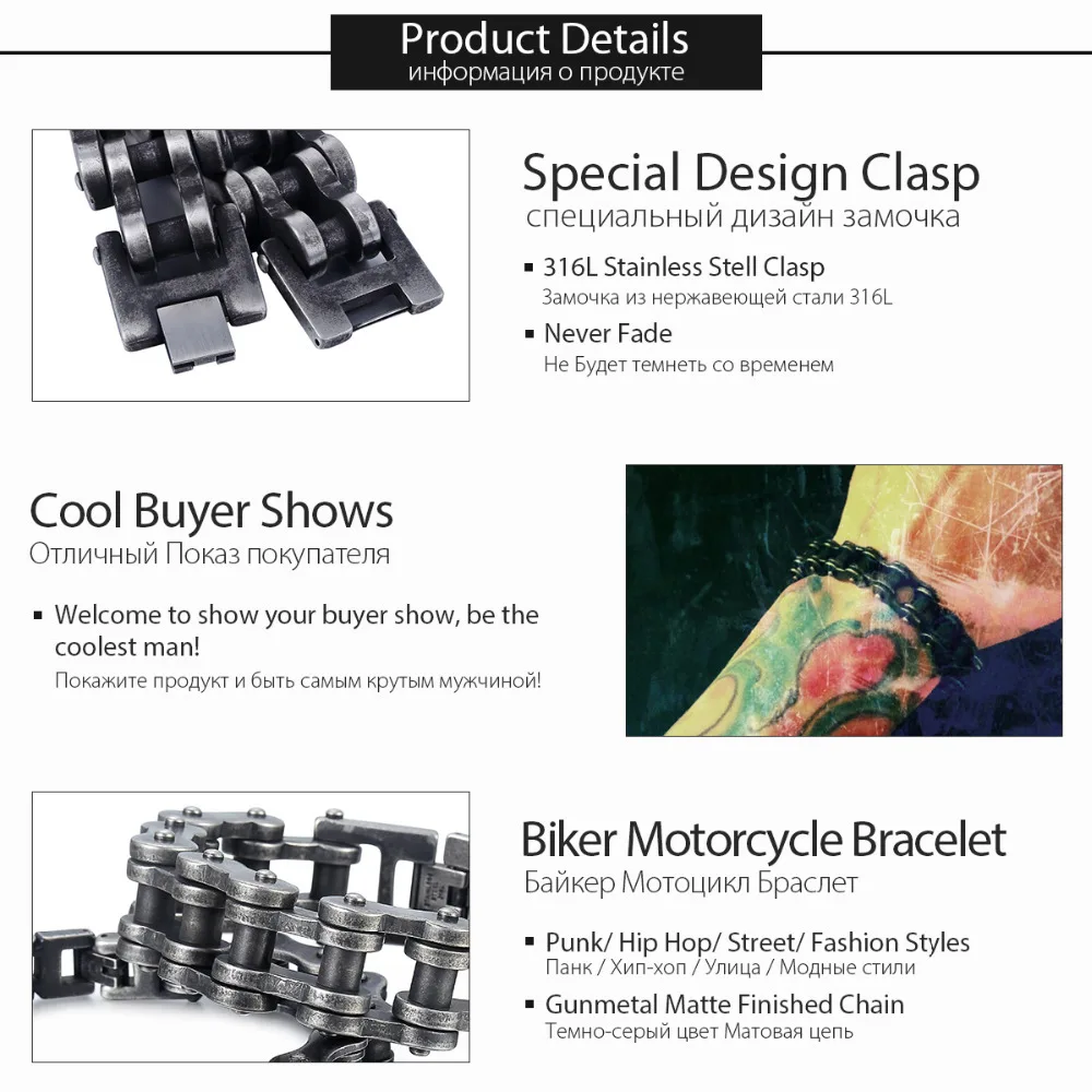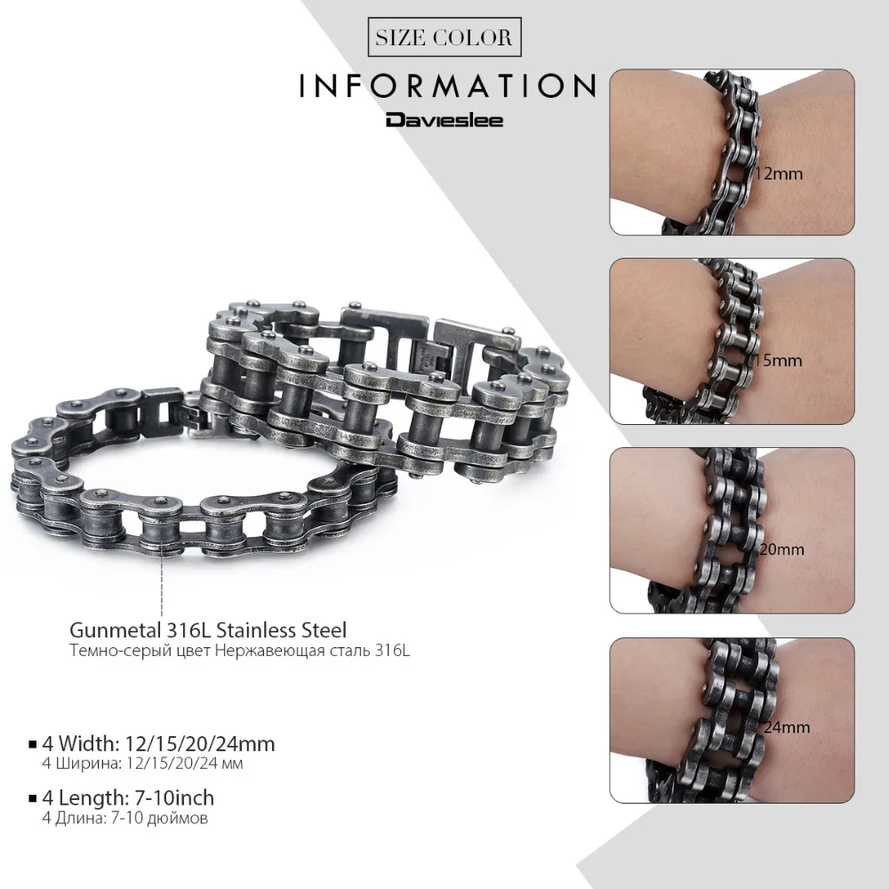 HIGH QUALITY Davieslee Mens Bracelets 2018 Biker Motorcycle 316L Stainless Steel Gunmetal Matte Punk Bracelet fo