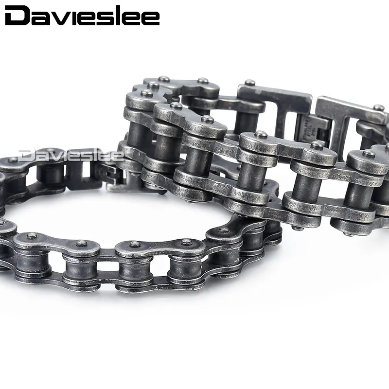Davieslee Mens Bracelets 2018 Biker Motorcycle 316L Stainless Steel Gunmetal Matte Punk Bracelet fo