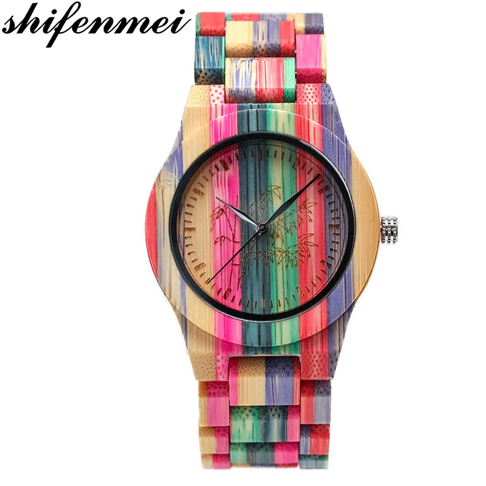 Related Products Shifenmei Unique Colorful Women Bamboo Watches Lovers Handmade Natural Wooden Bracelet Quartz Analo