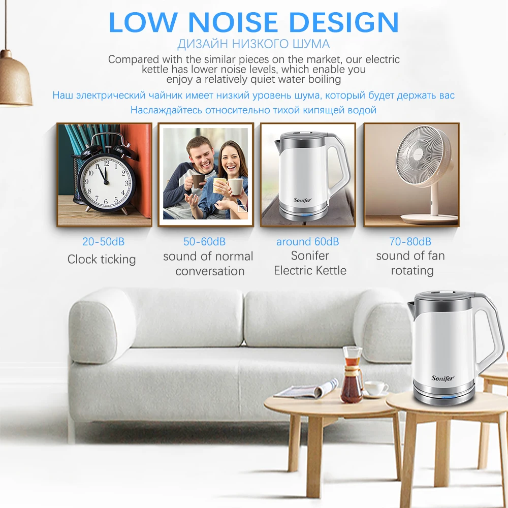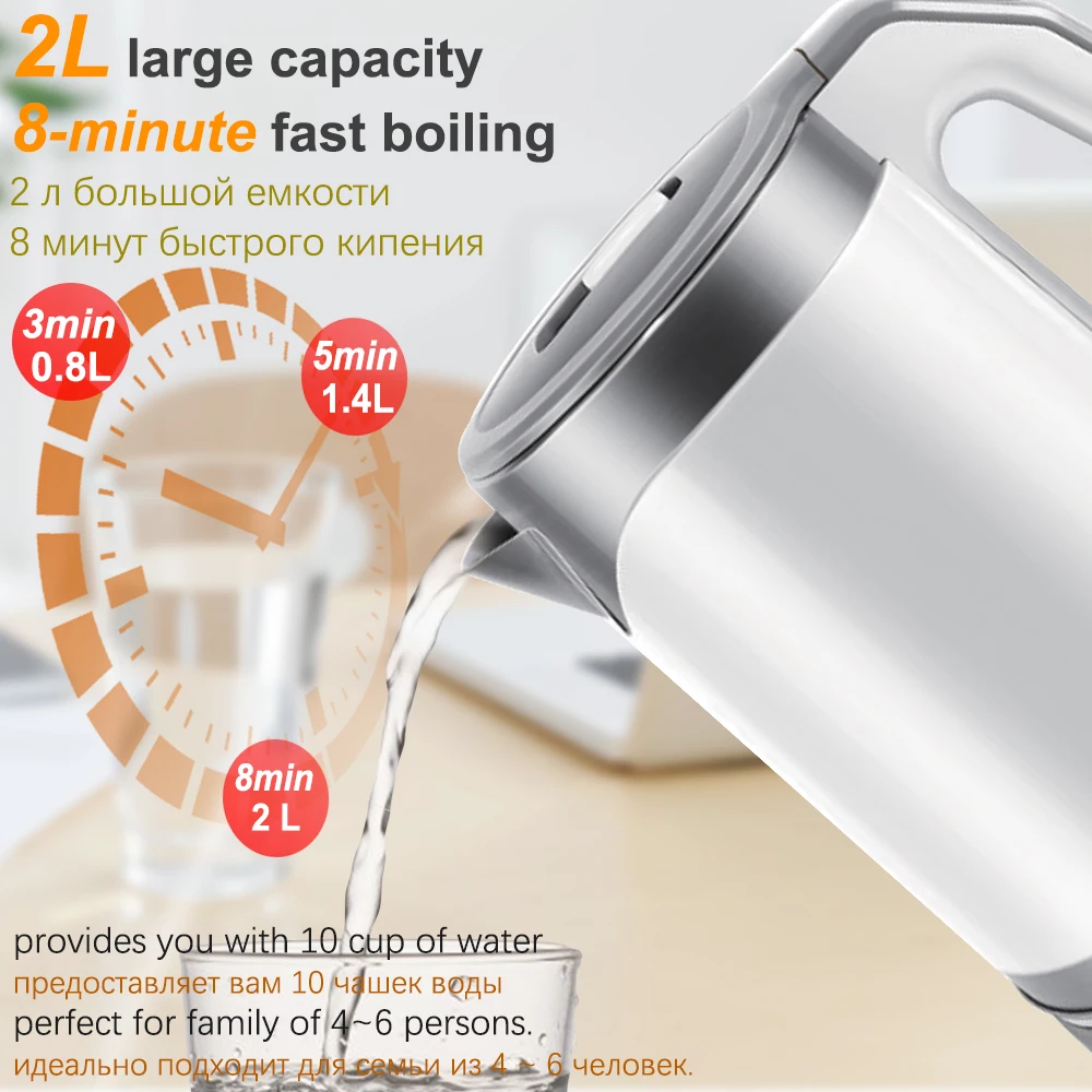HOT Sale 2.0L 220V Electric Kettle 304 Stainless Steel Cordless 1500W Household Kitchen Quick Heating Electr
