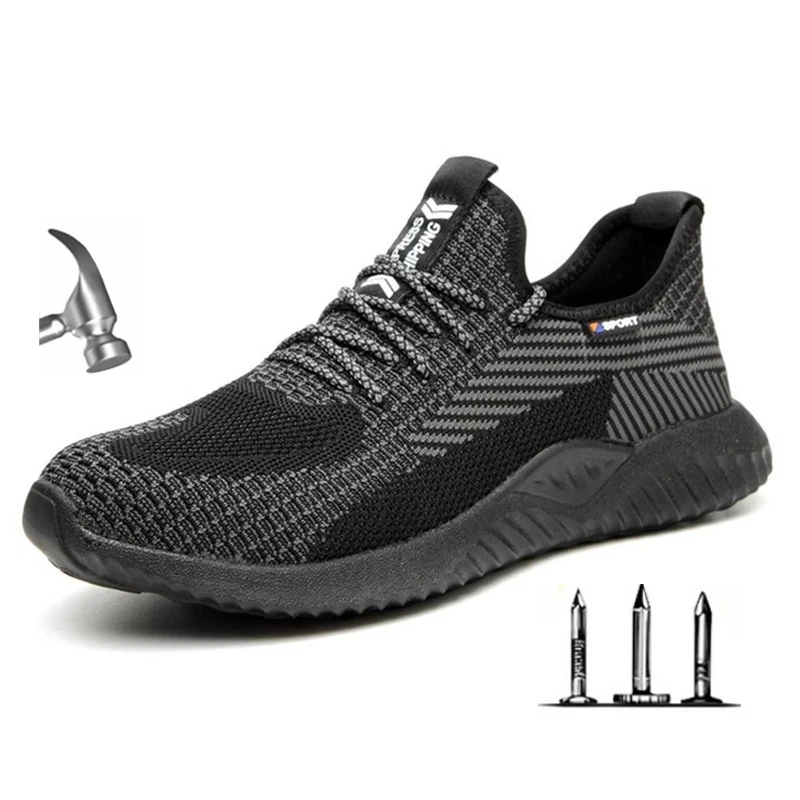 Men Safety Steel Toe Shoes Mens Air Mesh Fashion Puncture-Proof Boots Lightweight Summer Breathable