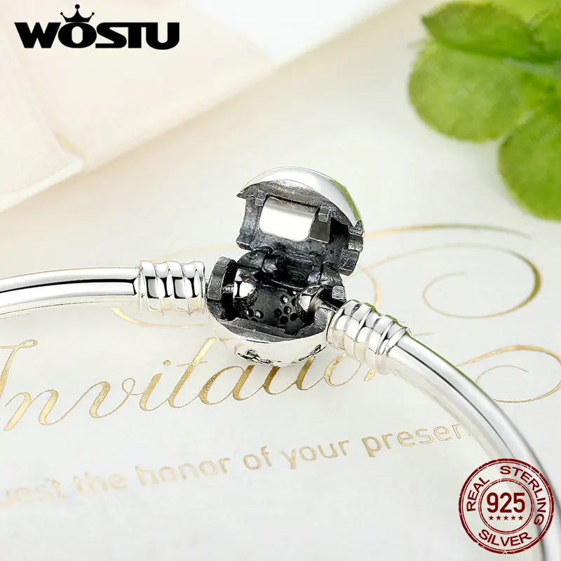 WOSTU Sparkling Stars Bracelets 100% 925 Sterling Silver Zircon Round Charm Bracelets Bangle For Women Silver 925 Jewelry CQB144 : Check Here