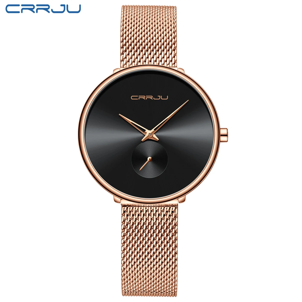 CRRJU Women Watch Top Luxury Brand Fashion Dress Quartz Ladies Watches Stainless Steel Date Female