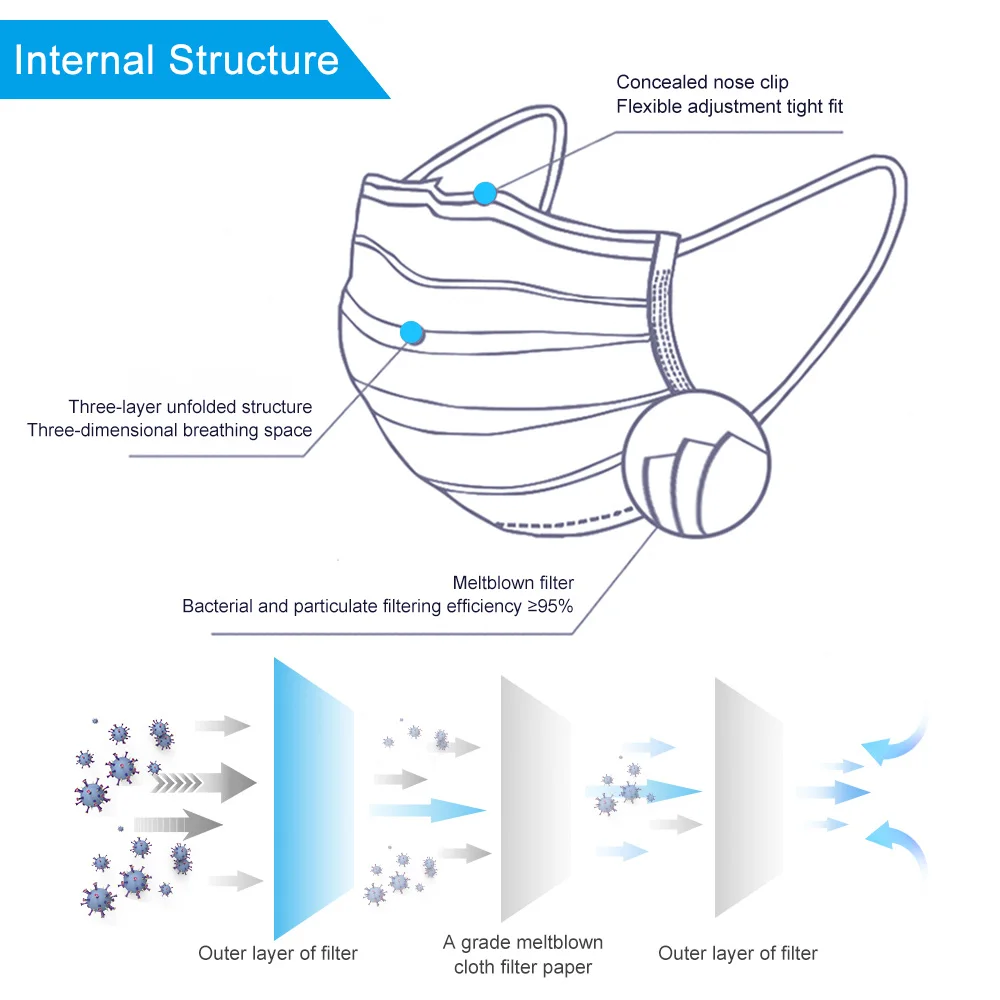 Best Quality 3-layer Protective Disposable Face Mask Anti-bacterial Mouth Cover Anti Dust Face Mask Elastic Ear